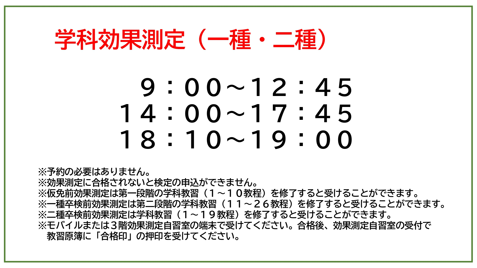①ここをクリックを押す ②ご希望日時を伺うアンケートフォームに、教習希望日時をチェックしてください。 *希望日時が重複した場合を想定し多めの時限選択をお願いします。 が、ご希望が添えない場合は、ご容赦くださいませ。 例:1週間に10時限の選択 → 2〜4時限予約 |